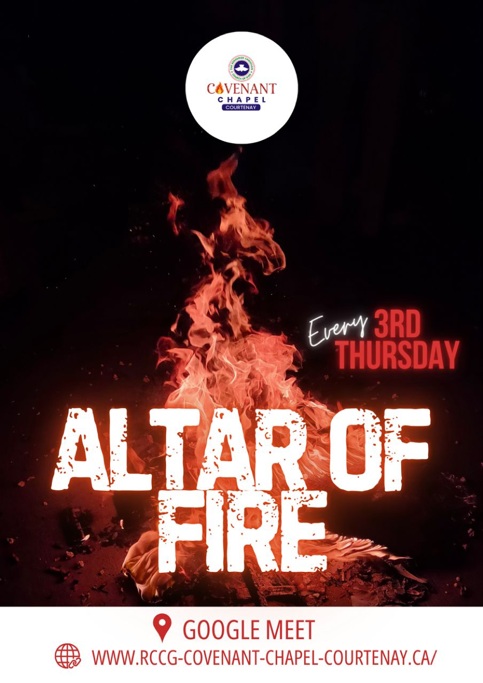 Our Altar of Fire service, held every Third Thursday of the month, is a deep spiritual experience designed to ignite your prayer life