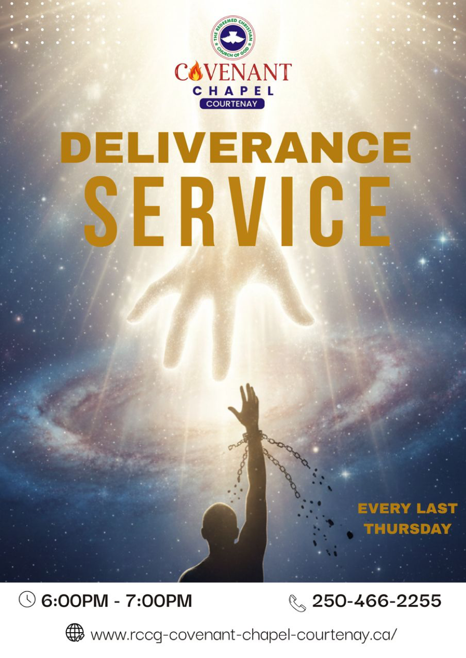 Our Deliverance Service, held every Fourth Thursday of the month, is a special gathering dedicated to breaking chains, overcoming spiritual battles.