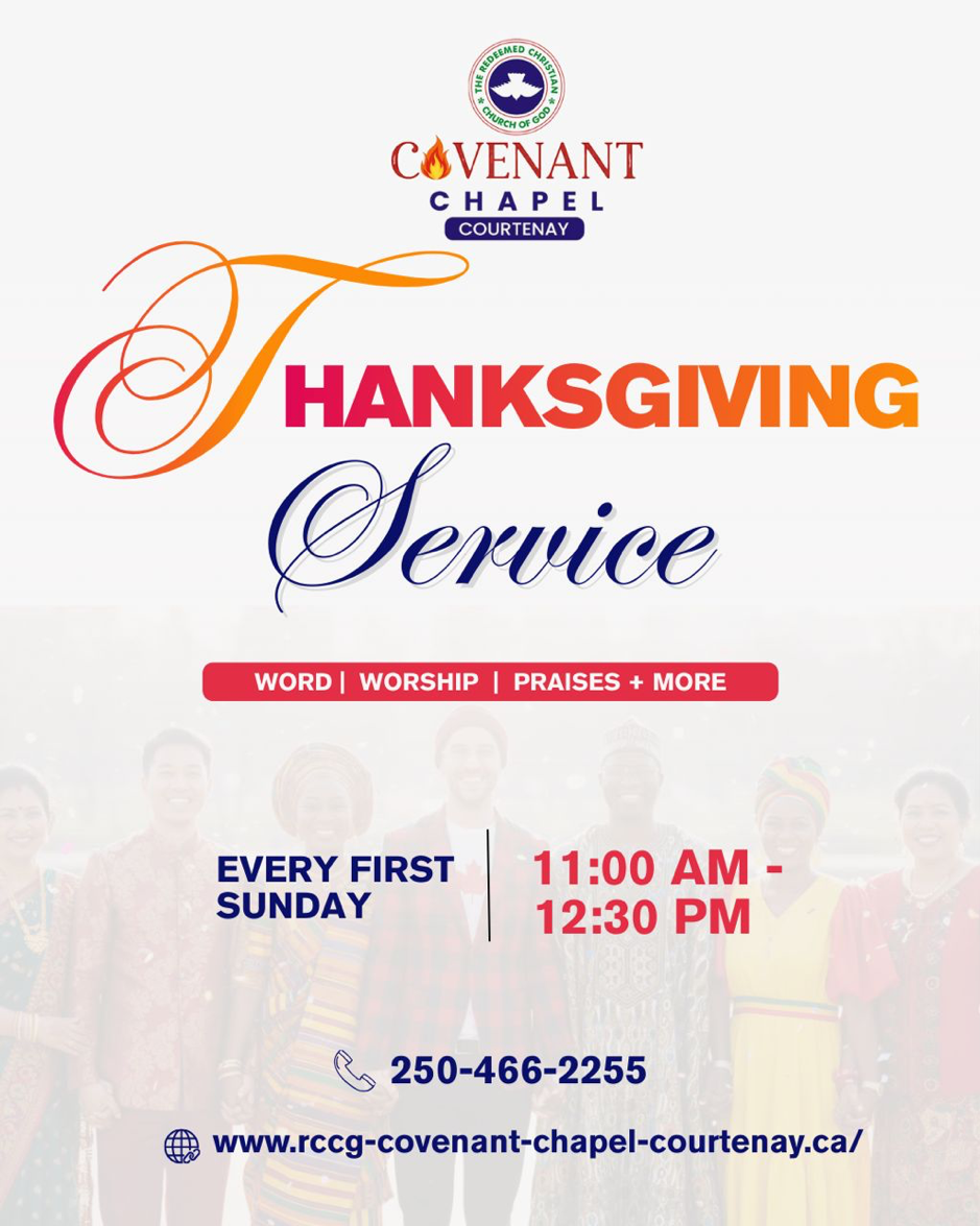 Our Thanksgiving Service, held every First Sunday of the Month, is one of the most joyful and uplifting gatherings at Covenant Chapel Courtenay. It is a special time when we come together as a family to thank God for His goodness, mercy, and blessings throughout the month.